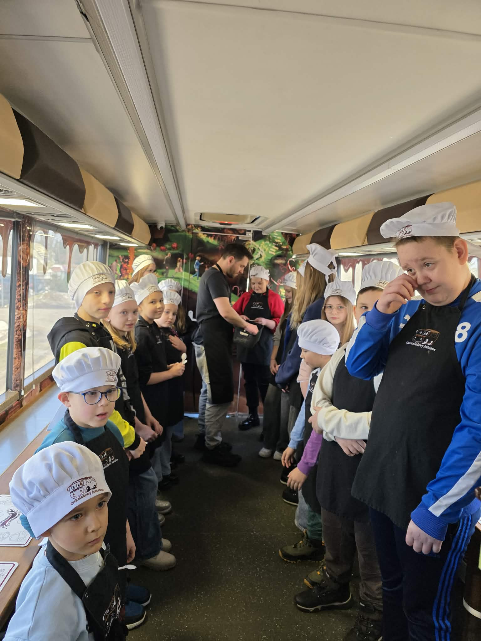 W dniu 26 lutego 2026 r. nasi uczniowie wzięli udział w wyjątkowych warsztatach w Czekoladowym Autobusie – miejscu, gdzie nauka łączy się ze słodką przyjemnością!