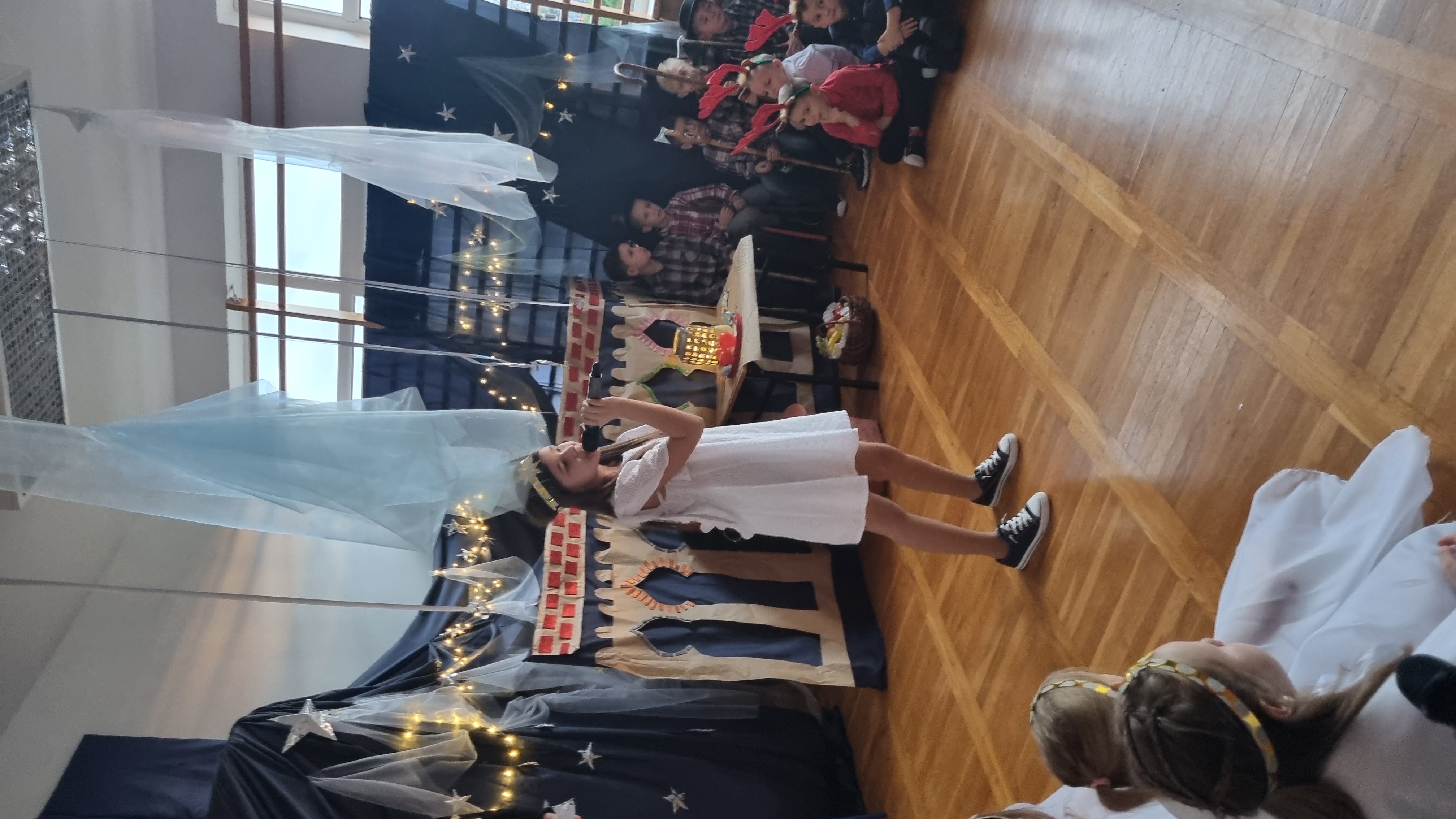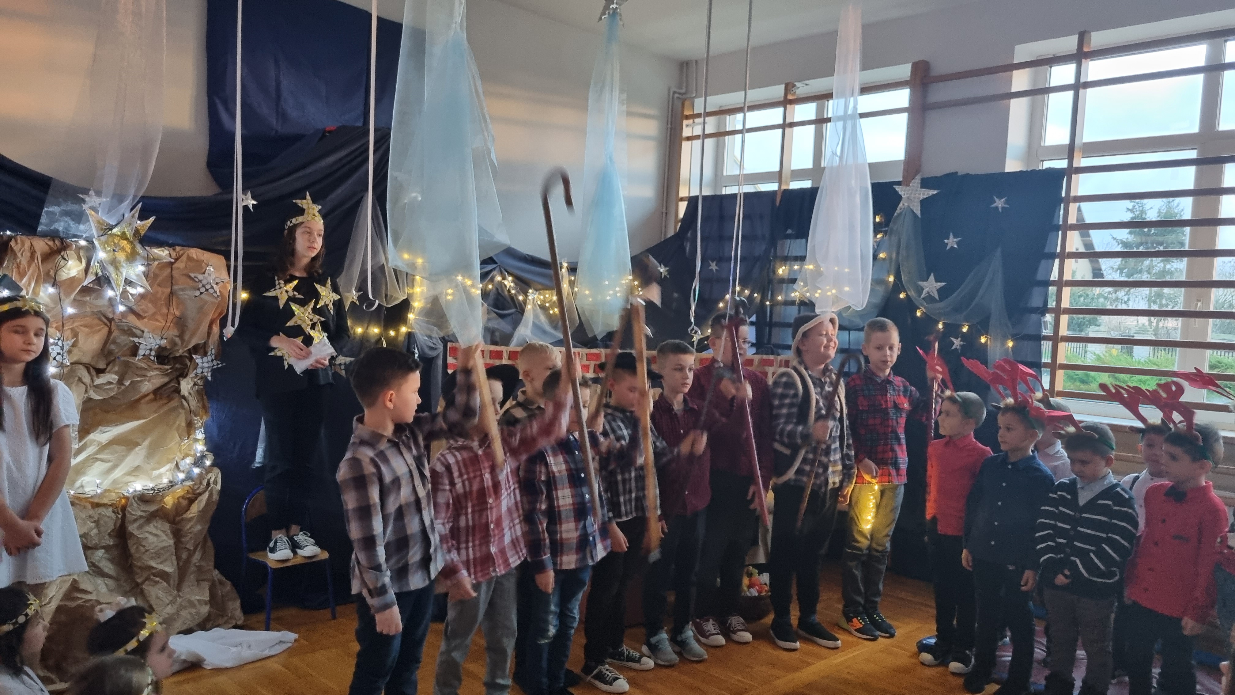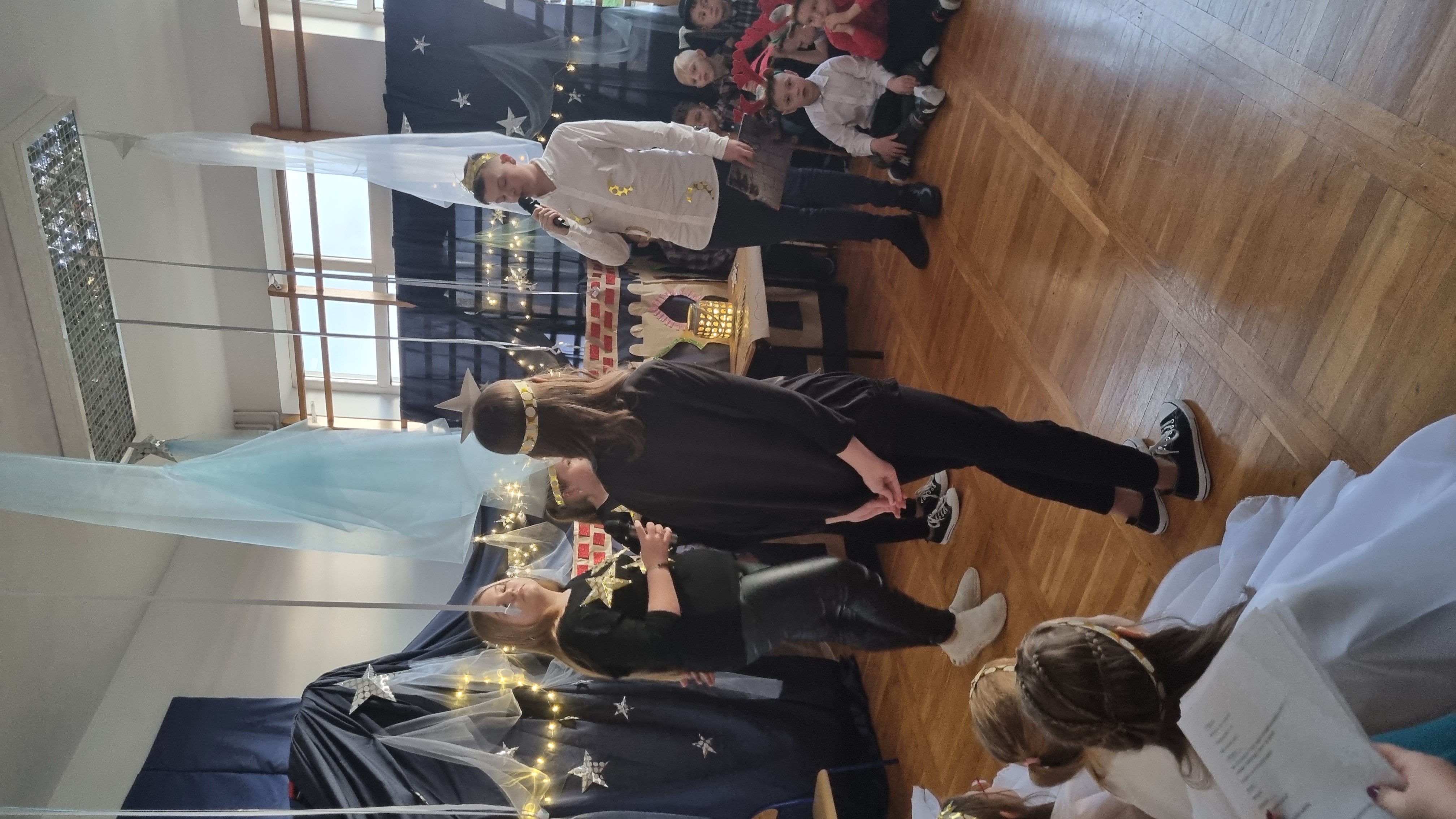 Po dwuletniej przerwie 14 stycznia odbyła się w naszej szkole zabawa choinkowa. Na początku Pani Dyrektor przywitała wszystkich uczniów, rodziców oraz zaproszonych gości, a następnie uczniowie klas 0-VIII zaprezentowali przygotowane przedstawienie jasełkowe, które choć przez chwilę pozwoliło poczuć magię świąt.